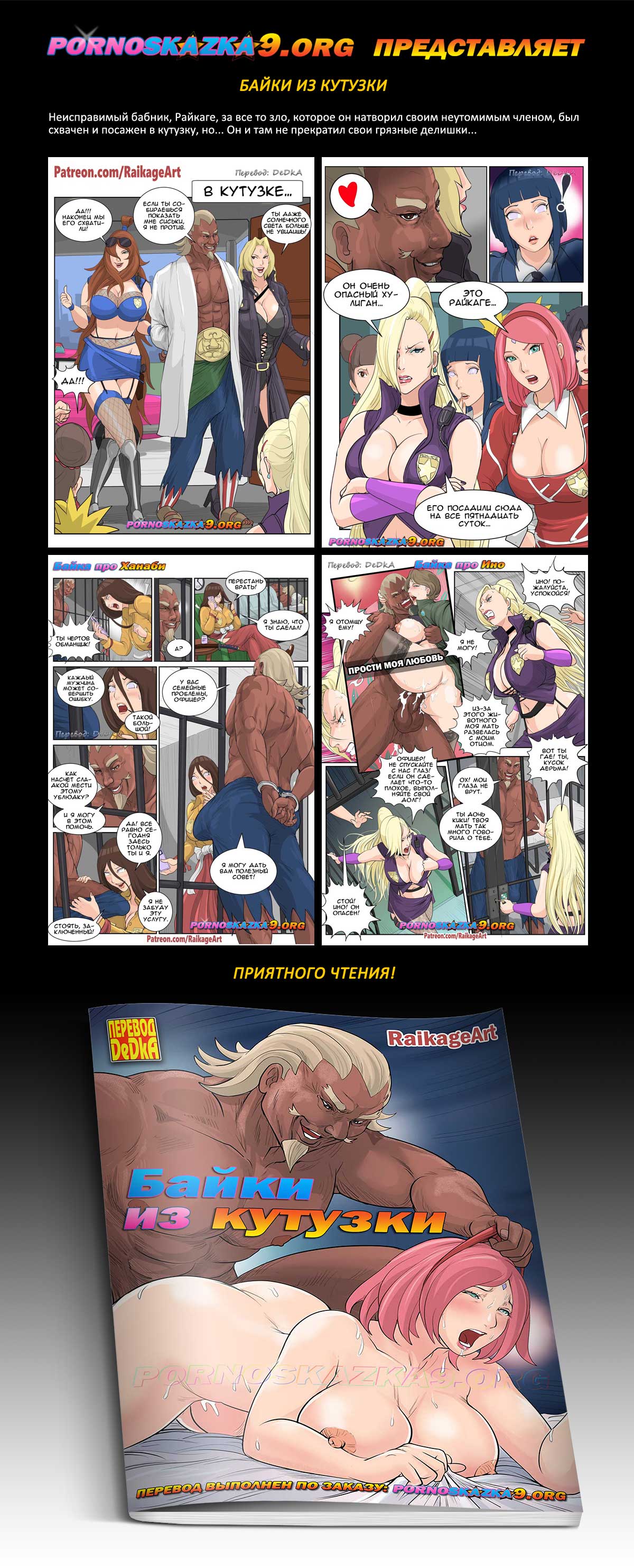 Порно комикс: «Байки из кутузки.» Неисправимый бабник, Райкаге, за все то зло, которое он натворил своим неутомимым членом, был схвачен и посажен в кутузку, но… Он и там не прекратил свои грязные делишки…